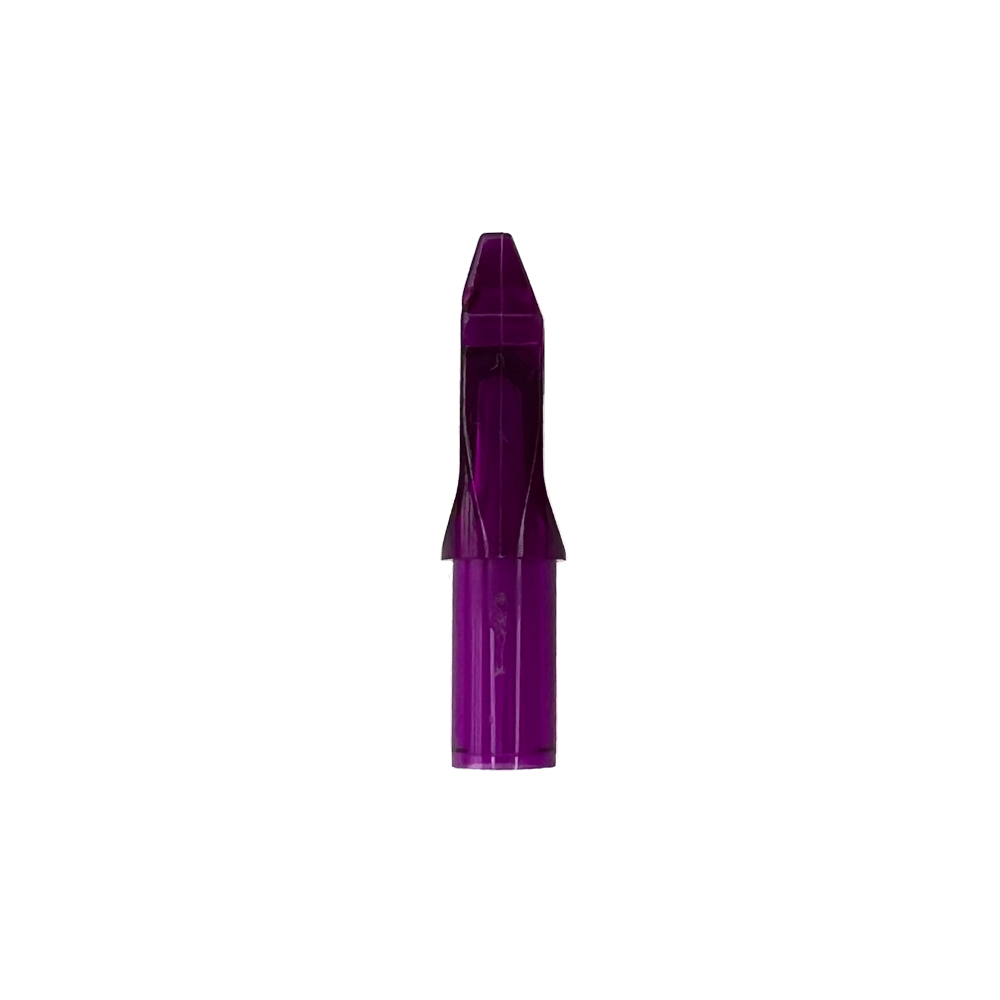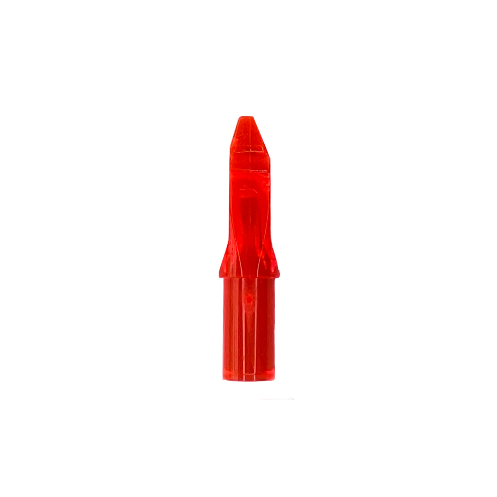 An asymmetrical nock is a nock that is not equal at the top and bottom. These nocks are mainly used by Recurve and Barebow shooters, because they do not pull the string symmetrically. With an asymmetrical nock you ensure that the arrow leaves the string on the right side and this improves the arrow flight.