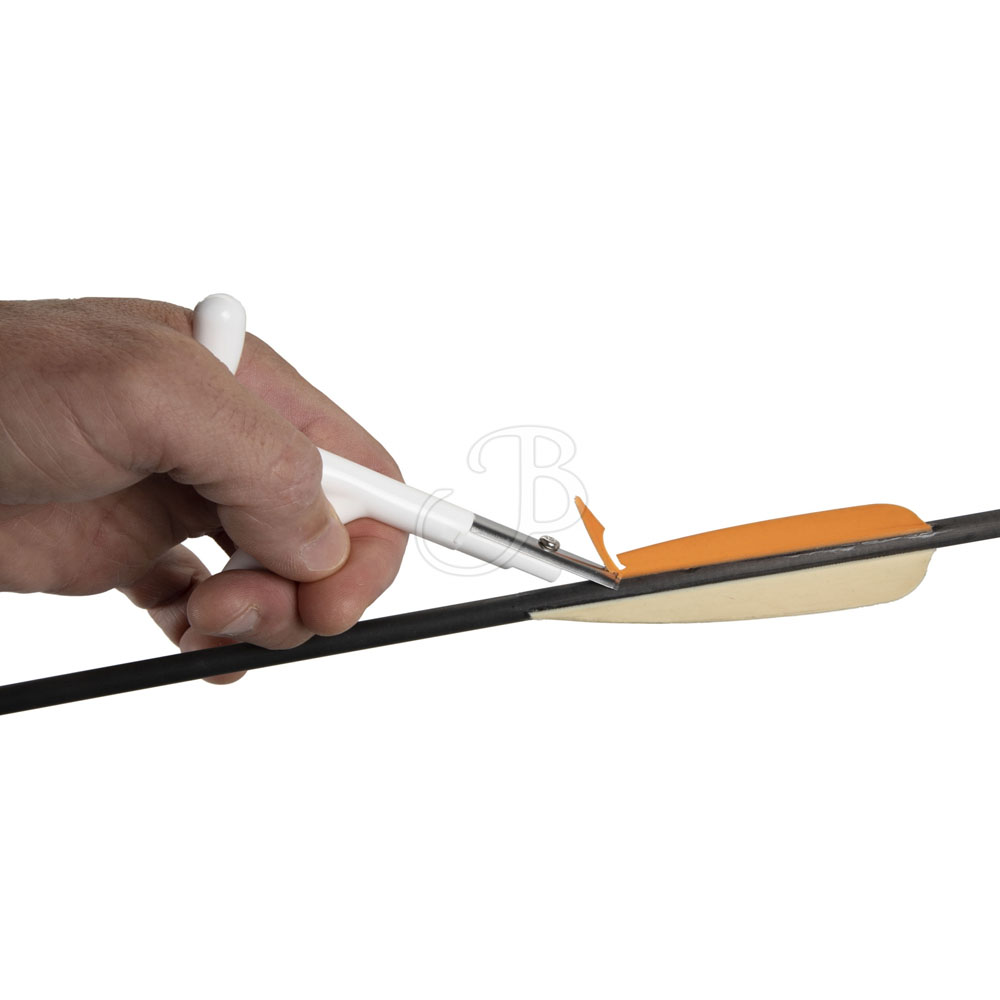 With the Cross-X Fletching remover you can remove every vane or feather from your arrow shaft in an instant. You can also easily remove glue residue from loose feathers. Thanks to the round curved blade, this stripper fits nicely around a shaft, allowing the feathers to be removed very effectively.