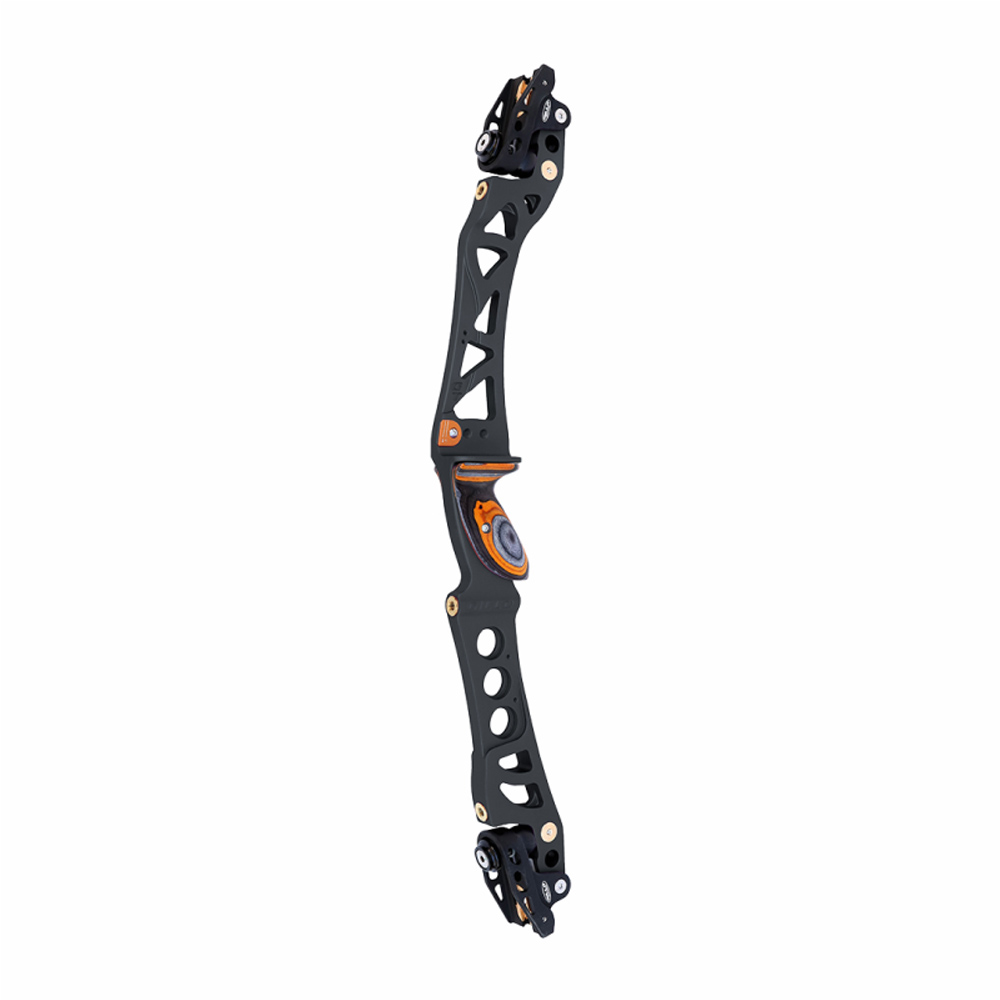 This Gillo handle is developed by Olympic Medallist Michele Frangilli. This is an ILF riser, meaning you can use limbs of nearly all manufacturers. This handle uses a unique floating limb pocket design, making it possible to adjust up to 30% of draw weight with one pair of limbs. This riser is compatible with all G1 and G4 barebow weights and even the UFO mount. the high quality anodised finish, the wooden grip and the fact your handle will be shipped in a nice sleeve makes this a neat total package.