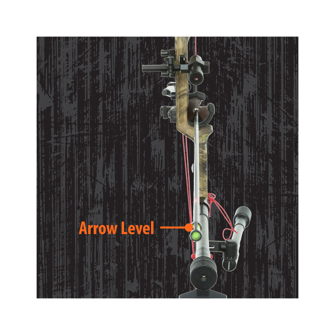 The detachable level is used for horizontal bow adjustment. Then the level can be unscrewed and used on any standard arrow as an arrow level.
