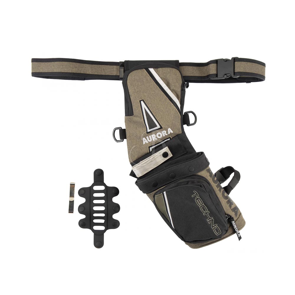 The Field quiver is so convenient it is more and more popular, also among those who shoot target archery. The way arrow stick out of it, pointing backward gives the archer more space for movement on the shooting line. This new Aurora model features a beautiful and elegant structure, with a selection of colors in a melange fabric. The quiver is complete of a belt in a matching color, thigh, a spare arrow separator and a removable 6 spaces rubber divider. There are also 2 pockets for small accessories: 1 on the main body and 1 on the upper part of the quiver where an open pocket for the arrow puller is also present.